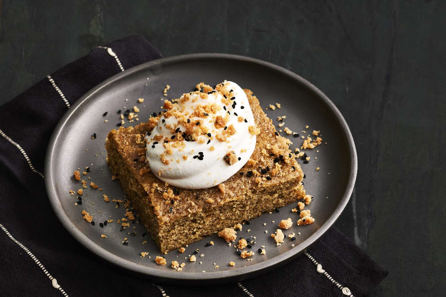 To create the tender, delicate crumb, butter is beaten into the dry ingredients, a rather unusual mixing method that makes it nearly impossible to overmix the batter. Sour cream locks in moisture, while Turkish coffee and corn flour give the cake a complex, sophisticated flavor profile that’s hard to put your finger on. Meanwhile, the crunchy nigella seed streusel goes well with warming pumpkin pie spice notes and the cake’s nuanced coffee flavor. The result is an elevated coffee cake that will have you going back for seconds (and thirds).