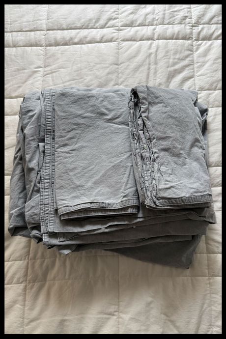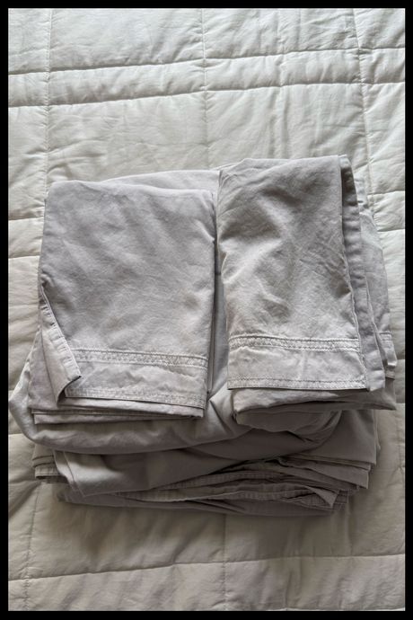 These are the sheets that changed everything for me. The best way to describe them is buttery. They’re made of organic cotton in a sateen weave, which is more densely woven than percale, making the fabric feel slinkier, thicker, and thus warmer. People who are anti-sateen might call the weave “greasy.” Sateen sheets also have that telltale sheen, which can be divisive. These Morrow sheets don’t have that shine. Instead, they have a matte finish and an incredibly soft and fluid hand feel thanks to the prewashing process. They also feel lighter than regular sateen sheets. And they only get better wash after wash. I love them.