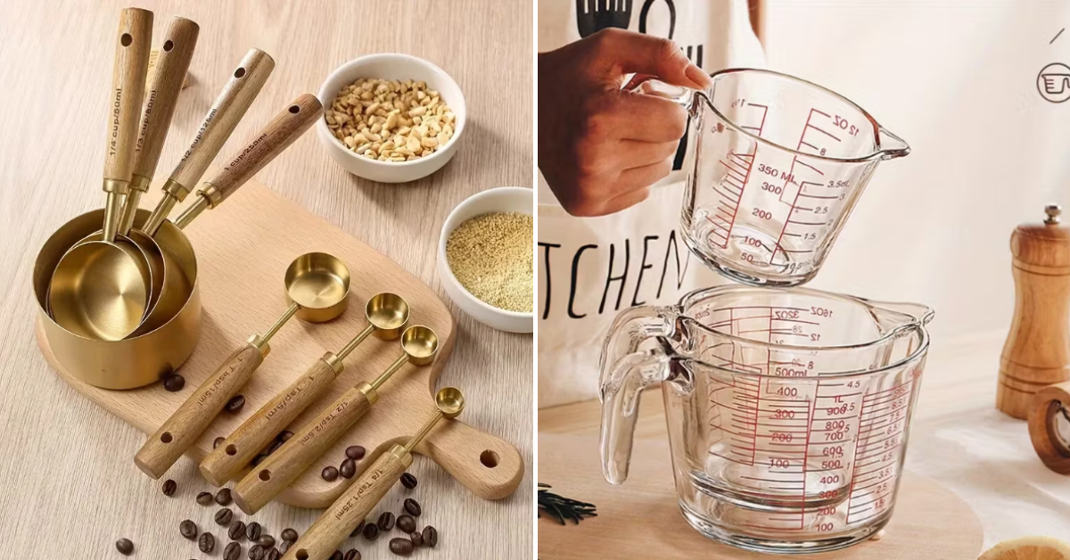 Compact and stylish in gold, these tools are practical for everyday kitchen tasks, from measuring flour and sugar to spices and liquids.